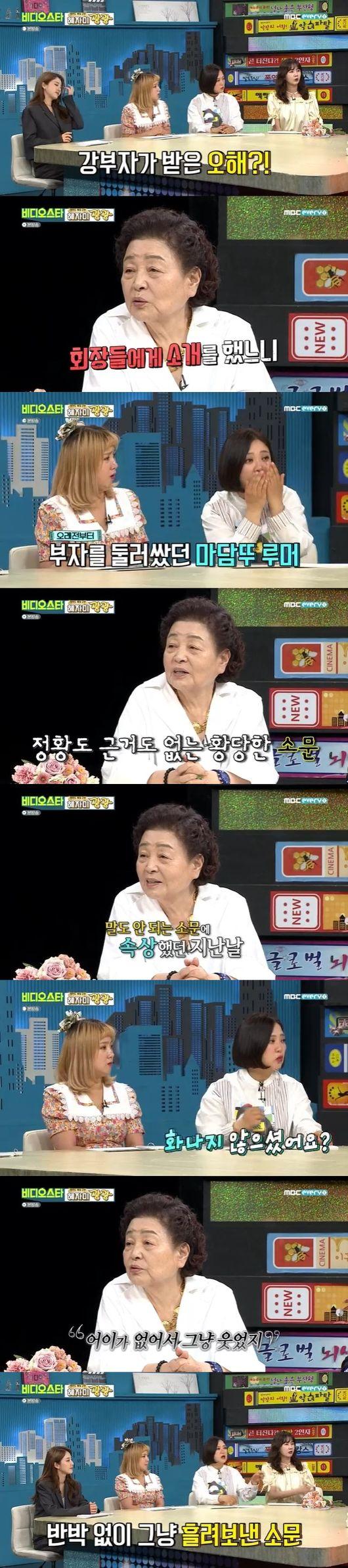 특히 강부자는 '마담뚜' 관련 루머에 대해서 "예전에 내가 후배들을 회사 회장에게 소개를 시켜줬다고 하더라. 그런 소문이 있었다. 강부자가 제일 싫어하는 얘기들을 했다"며 속상해했다.