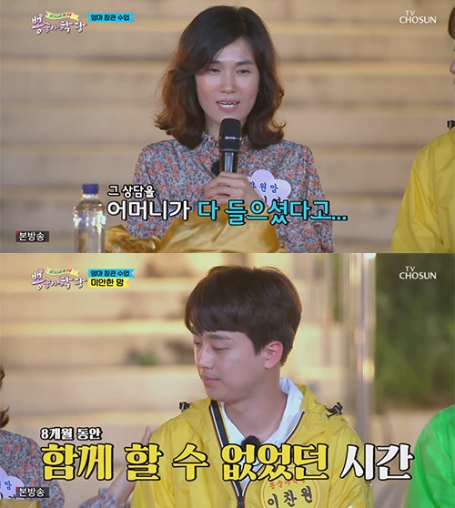 특히 이찬원 모친은 앞서 1교시에 진행된 '마음 상담' 시간 아들의 속마음을 또 다른 공간에서 참관하고 있었다. 이에 그는 "속상하다. 찬원이가 힘들 때나 기쁠 때나 옆에 못 있어줘서 본인이 외롭다는 게 이제부터 자주 보면 좋을 거라 생각했는데 찬원이가 '여기서 버려질까 두렵다’고 한 말이 조금 충격이었다"고 털어놨다.