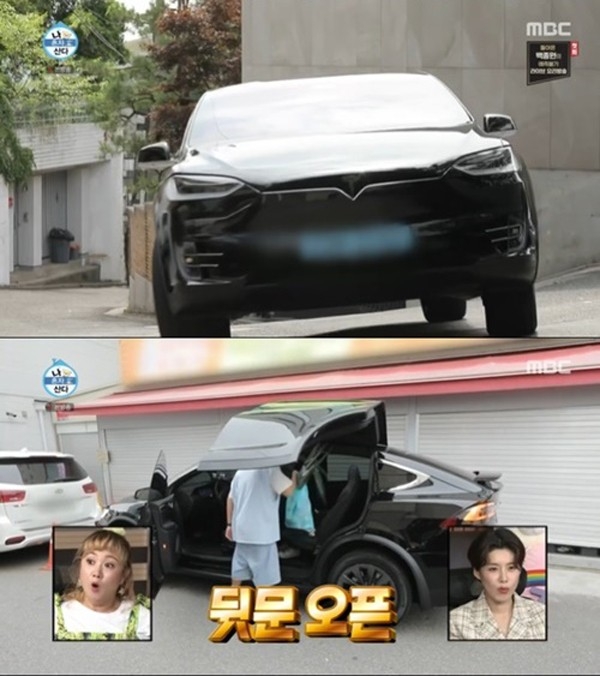 그의 검정색 테슬라 차가 공개됐고, 차 문이 위로 올라가자 이를 스튜디오에서 지켜본 멤버들은 "배트맨 같다"며 감탄을 연발했다.