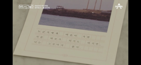 두번째는 보기만 해도 흐믓해지는 '서민재'와 '임한결'이였다. 임한결은 처음 골랐던 엽서와 다른 엽서를 한참 보다 선택했고, 그 엽서는 서민재가 쓴 엾서였다. 둘은 스쿠터를 같이 타면서 제주도에서 아름다운 추억을 만들었다.