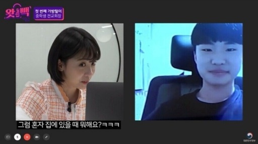 1일 대한민국 정부 유튜브 채널 '왓더빽 시즌2'에는 김민아와 중학생 전교회장 A군이 화상 인터뷰하는 영상이 게재됐다.