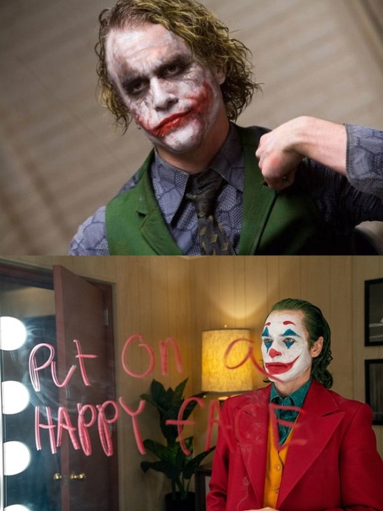 다크나이트는 배트맨과 조커의 싸움을 그리고 있다. 이 영화에서 조커는 배우 '히스레저'가 맡았었다. 히스레저는 최근 개봉한 '조커'의 '호아킨 피닉스'와 조커연기의 양대산맥을 이루고 있다. 히스레저는 다크나이트 촬영을 마치고 2008년 1월에 사망을 해 전세계의 충격을 안겨줬었다.
