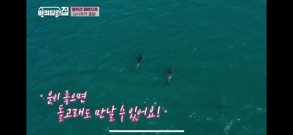 처음엔 2마리 정도 였던 돌고래가 10마리 넘게 떼지어서 바퀴달리집 식구들을 맞아 줬다. 낚시보다 더 값진 경험에 네 사람은 박수를 치며 감탄했다. 돌아오는 길에 해변 주변의 쓰레기를 줍는 공효진의 따듯한 마음씨도 볼 수 있었다. 그 마음에 성동일과 진구도 함께 쓰레기를 줍는 모습이 나왔다.