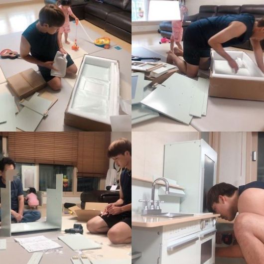 공개된 사진 속에는 허민이 주방놀이를 하고 있는 딸 아인이를 바라보고 있는 모습이 담겨 있다. 아인이를 위해 열심히 주방놀이를 조립하고 있는 정인욱의 모습이 눈길을 사로잡는다.