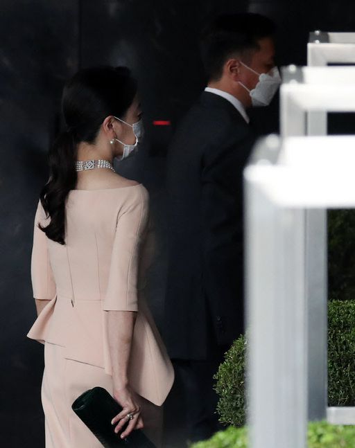 현대가(家) 며느리 노현정 전 아나운서는 정기선 현대중공업지주 부사장의 결혼식에 아이보리색 상하의와 진주 목걸이, 검은색 가방을 들어 우아한 모습을 보였다.