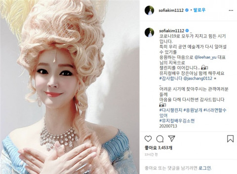 13일 저녁 늦게 올라온 김소현 배우의 응원메시지는 하루 만에 인스타그램 좋아요가 3453개에 이르는 등 많은 사람들의 호응을 받고 있다.
