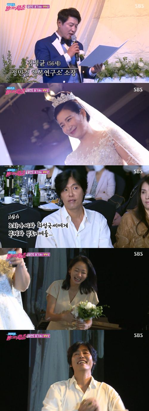 14일 방송된 SBS 예능프로그램 ‘불타는 청춘’에서는 새 친구 윤기원이 합류한 섬마을 여행 특집으로 꾸며진 가운데 김정균 정민경 부부의 결혼식 현장이 공개됐다.
