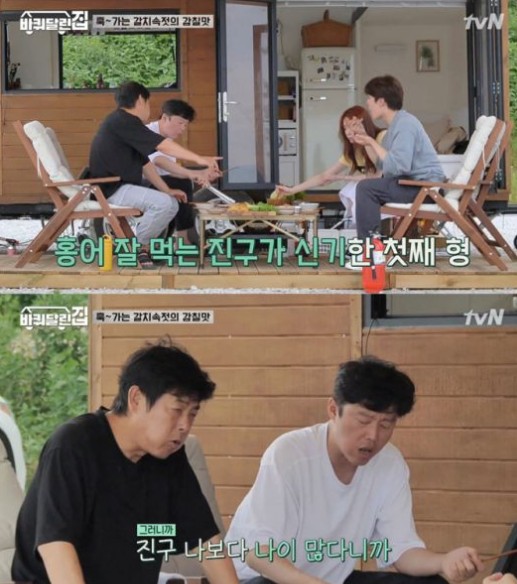 성동일은 "이렇게 어린 애가 홍어를 잘 먹기 쉽지 않다"고 했고, 김희원은 "진구는 나보다 나이가 많다. 너 솔직하게 얘기해 봐. 몇 년 생이냐?"고 물었다. 여진구는 "제가 사실 79년생"이라고 고백했고, 김희원은 "79년생도 나보다 어리다. 59년이나 69년으로 해야된다"고 말해 웃음을 자아냈다.