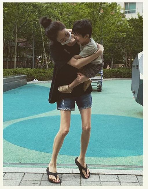 사진 속 김효진은 울고 있는 둘째 아들을 놀이터에서 품에 꼭 끌어안은 채 달래고 있다. 머리를 하나로 올려 묶고 검정 반팔티에 숏팬츠를 입고 있는 김효진은 편한 스타일임에도 불구하고 모델 포스가 풍긴다. 또한 극세사 다리도 눈길을 사로잡는다. 김효진은 둘째 출산 후 18kg을 감량했다고 밝히기도 했던 바. 변함 없는 모델 몸매는 감탄을 자아낸다.