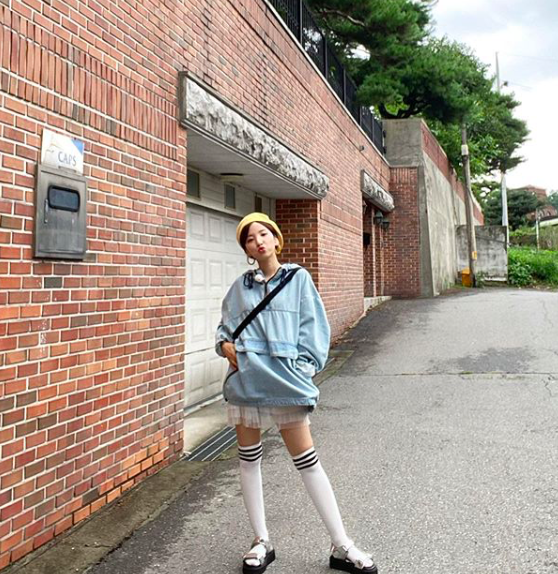지숙은 이어서 전체샷이 담긴 사진도 게시했다. 연청아노락에 치마를 레이어드 하여 입었으며 긴니삭스위에 샌들을 착용하여 아이돌 출신다운 소화력을 보여주었다. 팬들은 마치 유치원생아니냐며 꾸러기 같다는 반응을 보였다.