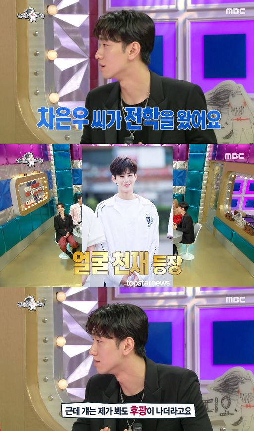 이어 남윤수는 “그런데 고3 때 인기가 한풀 꺾였다. 고등학교 3학년 때 그룹 아스트로 차은우 씨가 전학을 왔다”며 “정말 제가 봐도 후광이 났다. 피부도 두부 같이 하얗고”라고 회상했다.