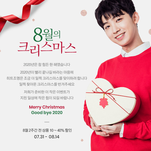 여름이 아직 한창이지만 기존 로고와 홈페이지 배너를 크리스마스 분위기로 꾸미고 8월 2주간 전 상품을 10%~40% 할인해 판매한다.