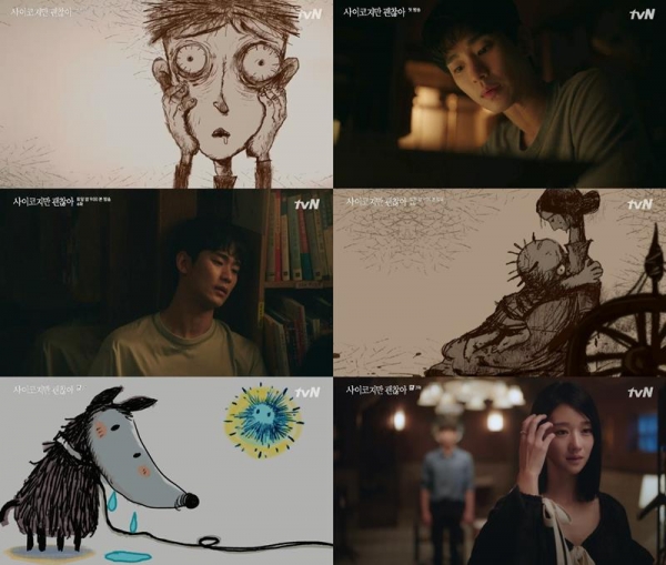 [스타인뉴스 임의정 인턴기자] '사이코지만 괜찮아'의 동화적인 무드를 완성시키는 일러스트가 드라마의 판타지를 더하며 시청자들을 매료시키고 있다.