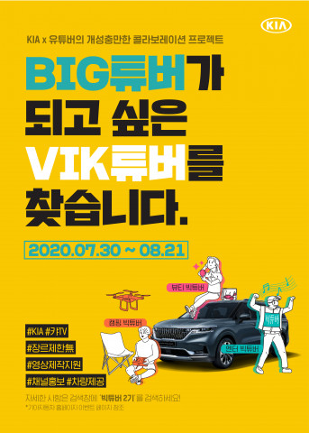기아차는 2020년 ‘빅(VIK) 튜버’ 2기를 모집해 9월부터 12월까지 3개월간 브이로그, 차박, DIY, 엔터테인먼트 등 장르를 불문하고 기아차와 관련된 다양한 영상 콘텐츠를 제작할 계획이다.