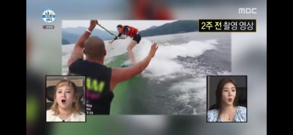 근교로 물놀이를 나온 연경은 요즘 웨이크 서핑에 빠져있다고 말했다. 웨이크 서핑은 모터 보트가 지나가고 생기는 파도에서 서핑을 하는것이다. 쉽게 말해 웨이크 보드와 서핑을 합친 것과 비슷하다. 김연경은 특유의 운동신경과 균형감각으로 강사도 놀랄만한 실력을 뽐냈다. 불과 2번 탄 사람이라고 믿을 수 없는 실력이었다.