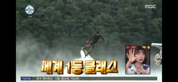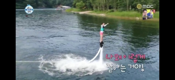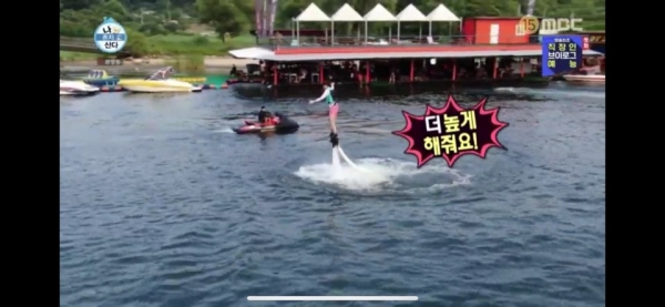 직접 싸온 김밥을 먹으며 유아인의 자세를 오마주 하던 김연경의 눈에 플라이 보드 눈에 들어왔다. 근처에서 훈련을 하고 있던 플라이보드 월드 챔피언이 있었다. 훈훈한 외모의 월드챔피언에게 반한 김연경은 플라이 보드까지 도전하게 되었다. 처음 타는 사람은 제대로 서있기도 힘든 플라이 보드를 훌륭하게 성공하고 말았다.