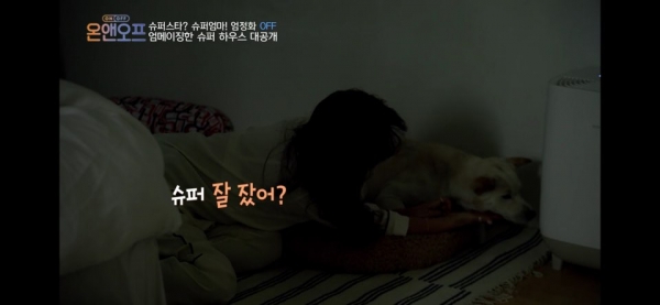 엄정화의 on이 꺼지고 off가 시작됐다. 침대에서 눈을 뜬 엄정화는 반려견 '슈퍼'와 다정한 애정표현을 하며 하루를 시작했다. 슈퍼를 마당에 풀어주고 씻겨주며 시간을 보냈다. 잠시 후 그녀는 요가를 시작했다. 상당히 어려운 동작도 훌륭히 소화해냈다. 평소에도 엄정화는 운동 마니아로 알려져있다. 웨이트 트레이닝, 서핑, 요가 심지어 킥복싱 까지 하는 그녀이다.