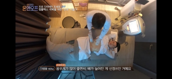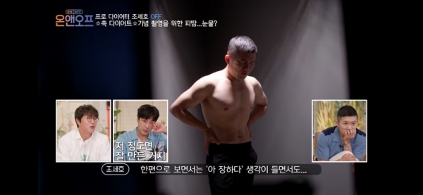 이후 트레이너는 조세호에게 프로필 사진을 찍자고 제안했다. 고심 끝에 조세호는 프로필 사진을 찍기로 했다. 사진을 찍기 전, 조세호는 병원에 들려 초음파 시술을 받았다. 평소 컴플렉스 였던 처진 배를 치료하기 위해서 였다. 살이 많이 빠지면서 복부 쪽의 살들이 처졌기 때문이다. 조세호는 이전 방송에서도 이런 점들을 컴플렉스라고 밝힌 적이 있다.
