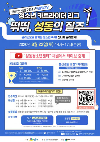 [스타인뉴스 한정연 기자] 시립성동청소년센터가 성동구청소년어울림마당 청소년 카트라이더 리그 ‘뛰뛰, 성동의 질주!’를 개최한다.