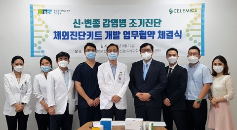 [스타인뉴스 이상백 기자] 바이오 소재 기술기업 셀레믹스(대표 이용훈, 김효기)가 신·변종 감염병을 조기에 진단할 수 있는 체외진단키트 개발 및 상용화를 위해 12일 순천향대천안병원과 관련 업무협약을 체결했다고 13일 밝혔다.