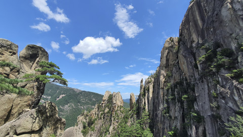‘한국의 장자제(張家界)’라는 말처럼 코스 곳곳에서 집채만 한 바위와 수직의 암벽의 뛰어난 풍광을 볼 수 있다. 바위 사이에 뿌리를 내리고 하늘을 향해 자라는 금강송의 의젓한 모습도 놓칠 수 없는 장관이다.