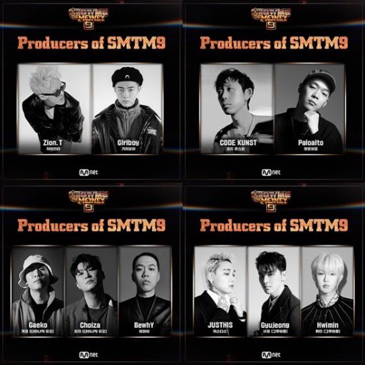 이번 쇼미9의 프로듀서들이 정해졌다. '자이언티와 기리보이', '코드 쿤스트와 팔로알토', '개코, 최자, 비와이', '저스디스, 그루비룸' 이렇게 4팀의 프로듀서와 함께 쇼미9의 참가자들이 우승을 놓고 경쟁한다. 쇼미더머니9은 올해 하반기 방송을 목표로 하고 있다.