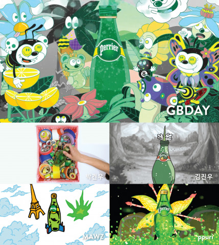 먼저 스트릿, 어반 아트를 바탕으로 독특한 작품 세계를 구축한 아티스트 ‘GBDAY(배진형)’는 작가 이름(Good & Bad Day)이 의미하듯 평소 우리가 사는 일상을 그려낸다. 그는 페리에의 ‘Art & Nature’ 키워드를 활용해 브랜드 아이코닉을 보여주면서 MZ세대 젊은이들의 갈망을 나타냈다.