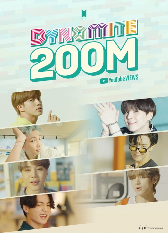 지난 21일 오후 1시(이하 한국시간) 공개된 방탄소년단의 디지털 싱글 'Dynamite'(다이너마이트) 뮤직비디오는 공개 후 4일 12시간 만에 유튜브 조회 수 2억 건이 넘었다. 자체 최고 기록이었던 '작은 것들을 위한 시'(Boy With Luv) (Feat. Halsey)의 11일 19시간 42분 보다 무려 1주일 이상 단축했다.
