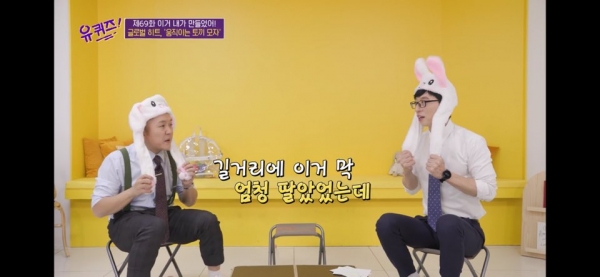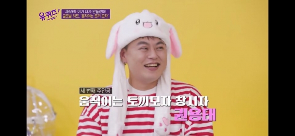 한 때 인터넷과 길거리에서 선풍적인 인기를 끌었던 모자가 있다. 바로 귀가 움직이는 토끼모자이다. 토끼모자를 처음 개발한 '권용태' 씨도 유퀴즈에 출연했다. 그는 조그만 로드샵을 운영하다가 움직이는 말 장난감을 보고 영감을 얻어 토끼모자를 개발했다고 한다. 토끼모자는 연예인들이 착용하고 나오면서 엄청난 인기를 끌었다.