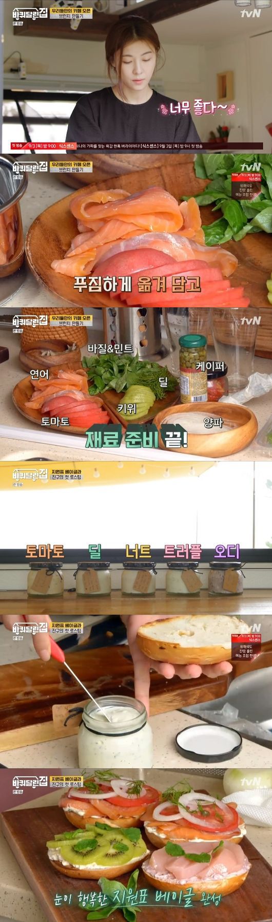 하지원은 여진구가 커피를 준비하는 동아 베이글 브런치를 준비했다. 자신이 직접 만든 크림 치즈를 바르고 집에서 직접 키운 바질, 허브 등을 올렸다, 또 자신이 담근 복숭아 절임까지 올리며 근사한 아침을 만들었다.