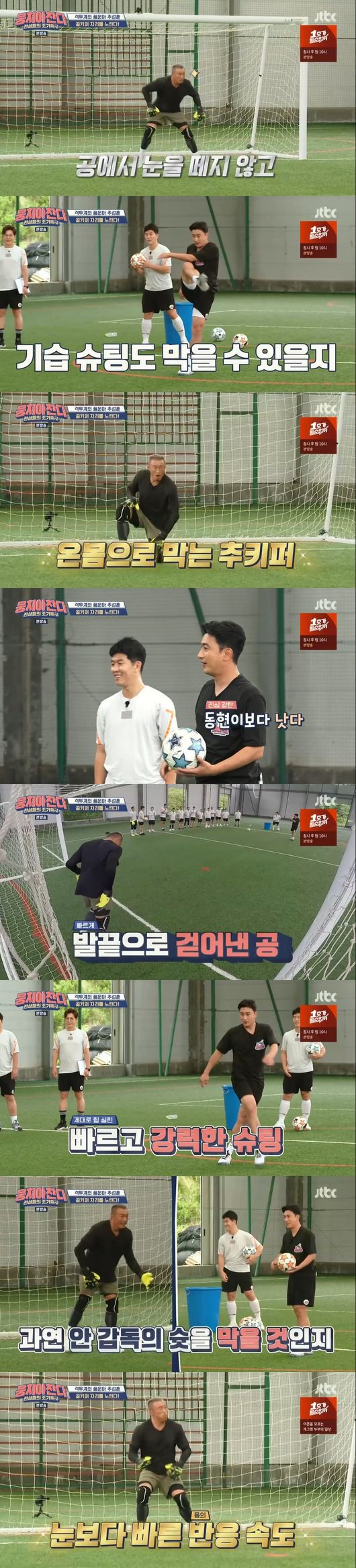 30일 방송된 JTBC ‘뭉쳐야 찬다’에서는 전설들의 경기력을 재활시키기 위해 각 포지션별 경쟁체제에 돌입, 최고령 현역 파이터 추성훈이 용병으로 투입됐다. 전설들은 ‘어쩌다FC’ 최초 골키퍼 용병으로 나선 추성훈의 무시무시한 활약에 잠자는 승부욕을 깨우며 부산 강호팀과 대접전을 펼쳤다.