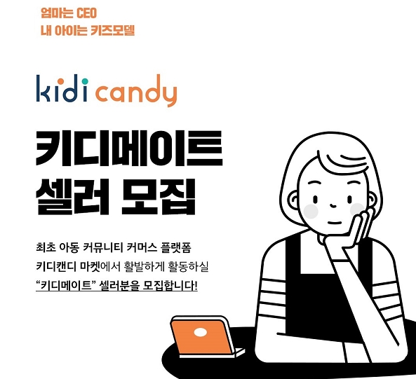 키디캔디 론칭을 대비해 모집을 시작한 키디메이트 셀러에는 아동 패션에 관심이 높은 주부, 아동 관련 부문의 기창업자, 투잡에 대한 의지가 있는 워킹맘 등은 누구나 지원할 수 있다.