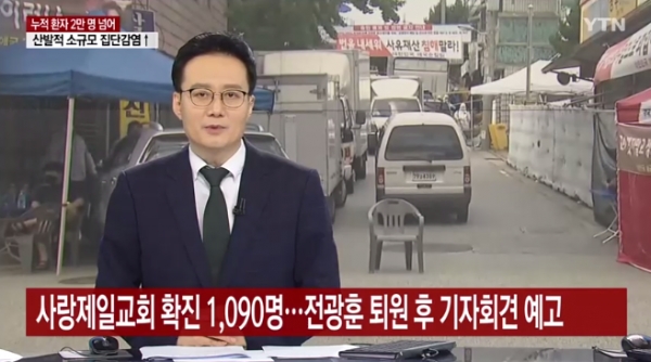 지난달 17일 전 목사는 서울 관악구의 한 병원에서 코로나19 진단 검사를 받고 확진 판정을 받았다. 이날 오후 전 목사는 구급차에 실려 병원으로 옮겨졌고 이후 전 목사의 아내와 비서도 잇따라 양성 판정을 받았다.