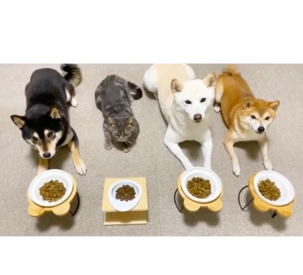 고양이 키키는 어릴때부터 시바견 삼남매와 형 누나 사이로 지내왔다. 그래서 그런지 시바견 삼남매의 밥먹는 습관 또 잠자는 버릇까지 마치 강아지와 같다. 특히 얼마 전 게시된 고양이 키키와 시바견 삼남매의 식사 영상은 형 누나들을 따라 주인의 밥을 먹으라는 신호를 기다리는 것이 영락없이 강아지를 닮은 모습이었다. 해당 영상은 약 조회수 45만회를 기록하는 기염을 토해냈다.