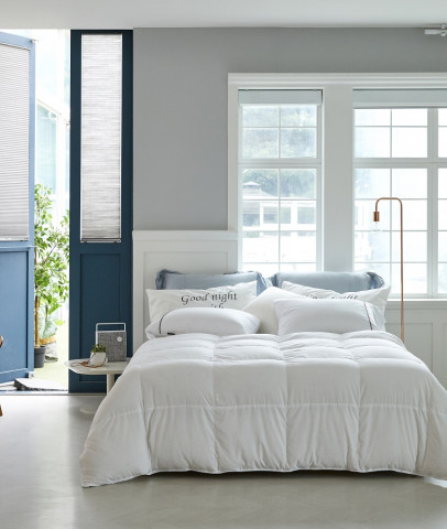 팀버튼은 직선으로 수놓은 자수가 이불에 볼륨감을 주고 심플함을 극대화한 제품이다. 은은한 광택을 지닌 화이트와 톤 다운된 그레이 두 가지 색상 구성이다. 닥나무 섬유를 원료로 개발한 친환경 소재 40수 한지섬유를 적용해 청량감이 우수하고 아토피 피부질환과 알러지 예방 기능을 함유해 피부 자극이 적다.