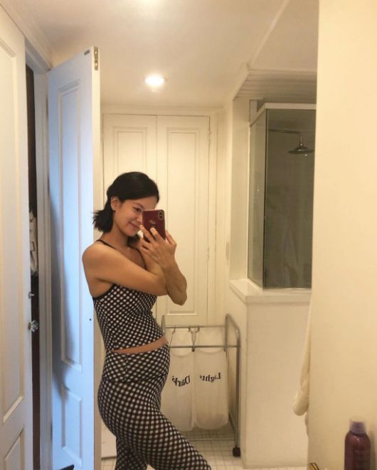 공개된 사진 속 아키바 리에는 둘째 임신 D라인을 선보이며 포즈를 취하고 있다. 또 그녀는 "딸딸맘"이라고 둘째 성별을 공개하기도.