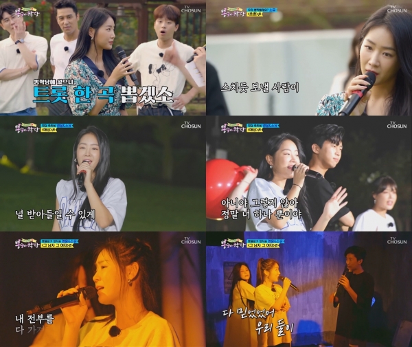 이날 출연진은 1대 1로 짝을 맺기 위한 매력 어필에 나섰고, 소유는 장윤정의 '초혼'을 부르면서 탄탄한 가창력과 섬세한 감성으로 감탄을 자아냈다. 애절한 마음이 가득 담긴 노래로 뜨거운 환호를 받은 소유는 임영웅의 선택을 받으면서 짝꿍을 맺었고, 방송 내내 환상의 케미로 분위기를 한층 띄웠다.