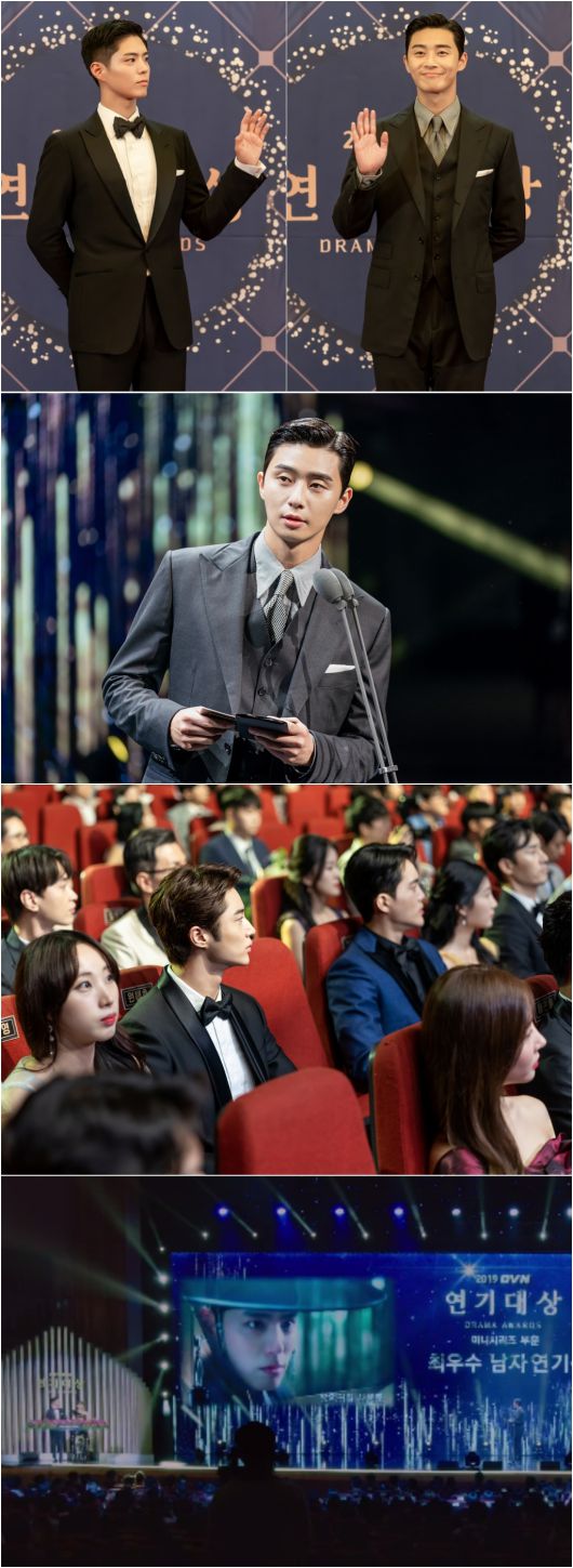 그런 가운데 공개된 사진 속, 연기 대상 시상식에 참석한 사혜준의 눈부신 비주얼이 시선을 사로잡는다. 사혜준의 모델 선배이자 톱스타 송민수(박서준 분)의 독보적 아우라도 설렘을 유발한다.