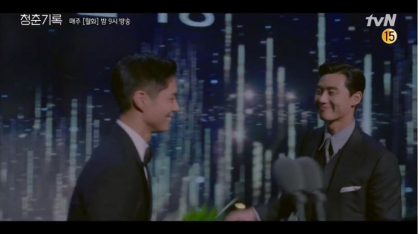 5일 방송된 tvN 월화드라마 ‘청춘기록’(연출 안길호, 극본 하명희)에서 사혜준(박보검 분)은 연기대상 시상식에서 최우수 연기상을 수상하며 본격적으로 꽃길을 걷기 시작했다.