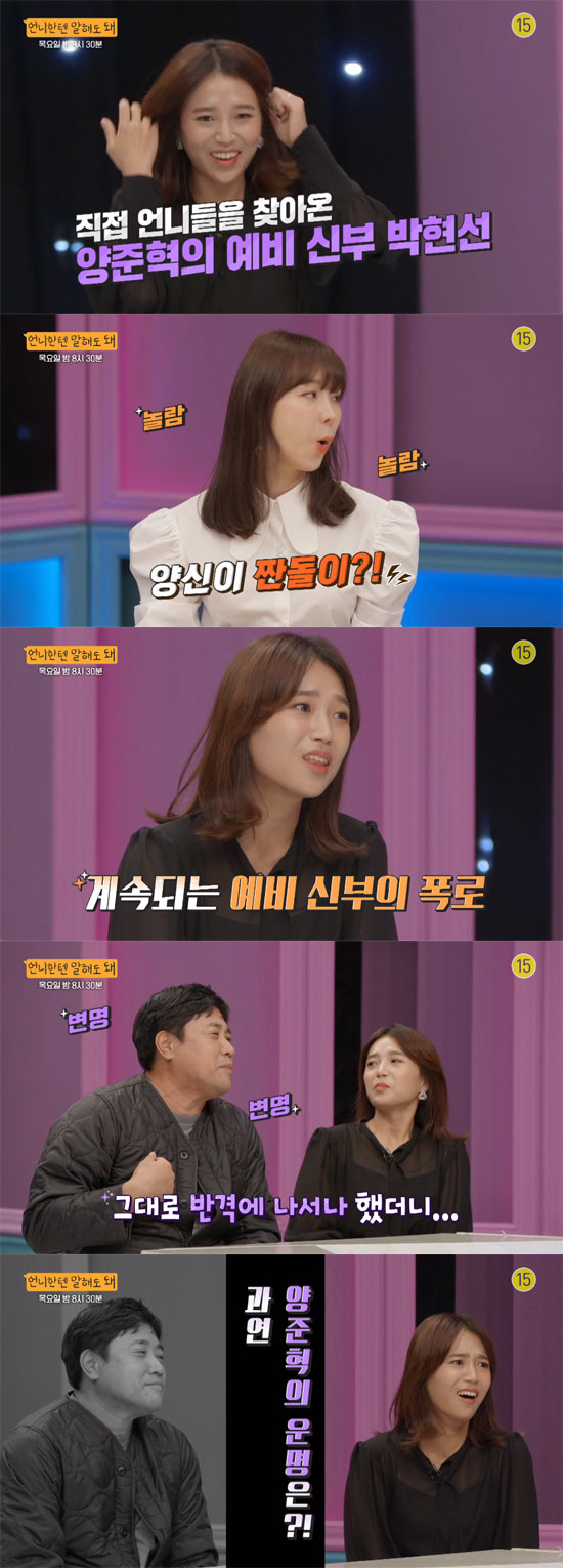 22일 방송되는 SBS플러스 ‘언니한텐 말해도 돼’ 에선 양준혁과 결혼을 2개월여 앞둔 박현선이 출연한다. 그는 “언니들의 조언을 직접 듣고 싶다”며 찾아와 거침없는 폭로를 이어간다.