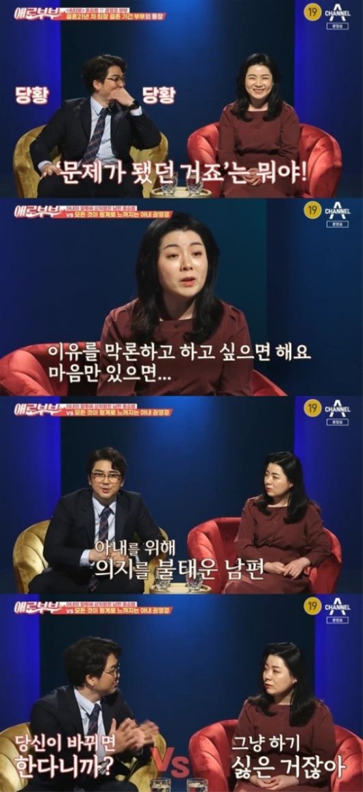 26일 채널A에서 방송된 '다시 뜨거워지고 싶은 애로부부' 13화에는 배우 홍승범X권영경 부부가 출연해 '속터뷰'를 했다.
