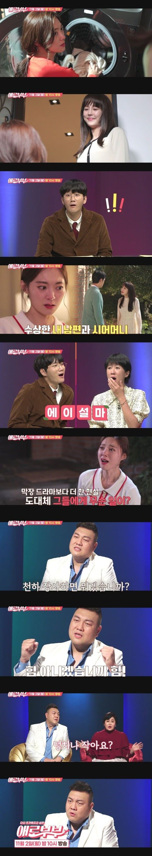 이날 애로드라마는 갑작스럽게 젊은 여인을 옆에 두고 "이 사람과 결혼하기로 했다"고 폭탄 선언을 날린 시아버지 앞에서 굳어진 한 부부의 모습으로 시작된다. 주인공인 아내는 자신과 동갑내기인 새 시어머니에 기막혀하는 가운데, 시어머니는 며느리에게 "이건 손빨래로"라며 속옷을 집어 던지는 등 거만한 요구를 서슴지 않는다.