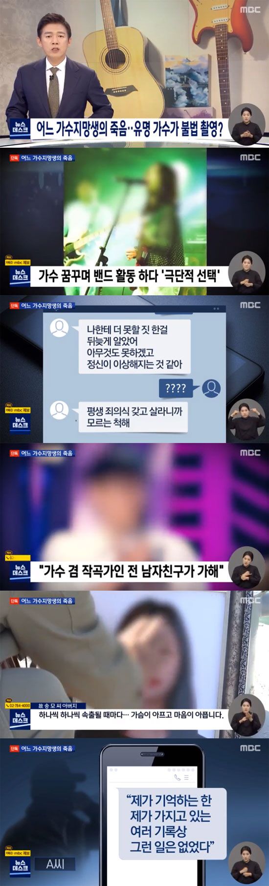 지난 3일 MBC 뉴스데스크 보도에 따르면, 지난 4월 가수 지망생 A씨(27)를 사망으로 몰고 간 가해자로 기타리스트 출신 가수이자 작곡가 B씨가 지목됐다.