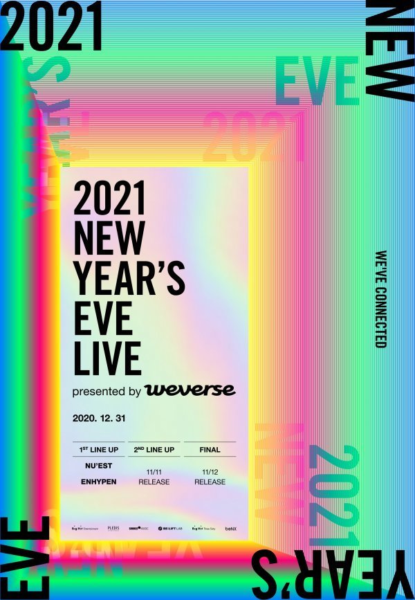 그룹 뉴이스트와 엔하이픈(ENHYPEN)은 10일 각각 자신들의 팬 커뮤니티 플랫폼 위버스와 커머스 플랫폼 위버스샵 등을 통해 '2021 뉴 이어스 이브 라이브(NEW YEAR’S EVE LIVE)' 개최 및 출연 소식을 알렸다.