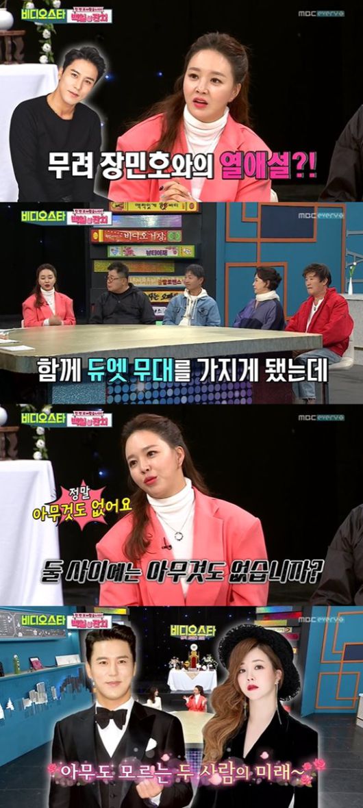 10일 방송된 MBC 에브리원 ‘비디오스타’에 출연한 금잔디는 장민호와의 관계에 여지를 남겼다.