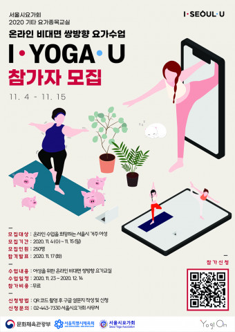 서울특별시체육회가 주최하고 서울시요가회가 주관하는 2020 기타 요가종목교실 온라인 비대면 쌍방향 요가수업 I·YOGA·YOU는 스포츠 배려 계층인 여성을 대상으로 개인별 맞춤형 요가 수업을 제공하는 사업으로, 서울시 거주 여성 250명에게 비대면 쌍방향 요가 교육이 무료로 제공될 예정이다.
