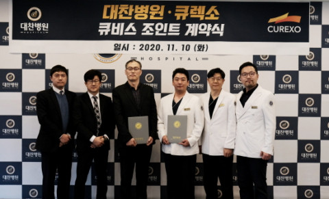 대찬병원과 큐렉소가 연구 개발 성공 후 공식 계약식을 개최했다