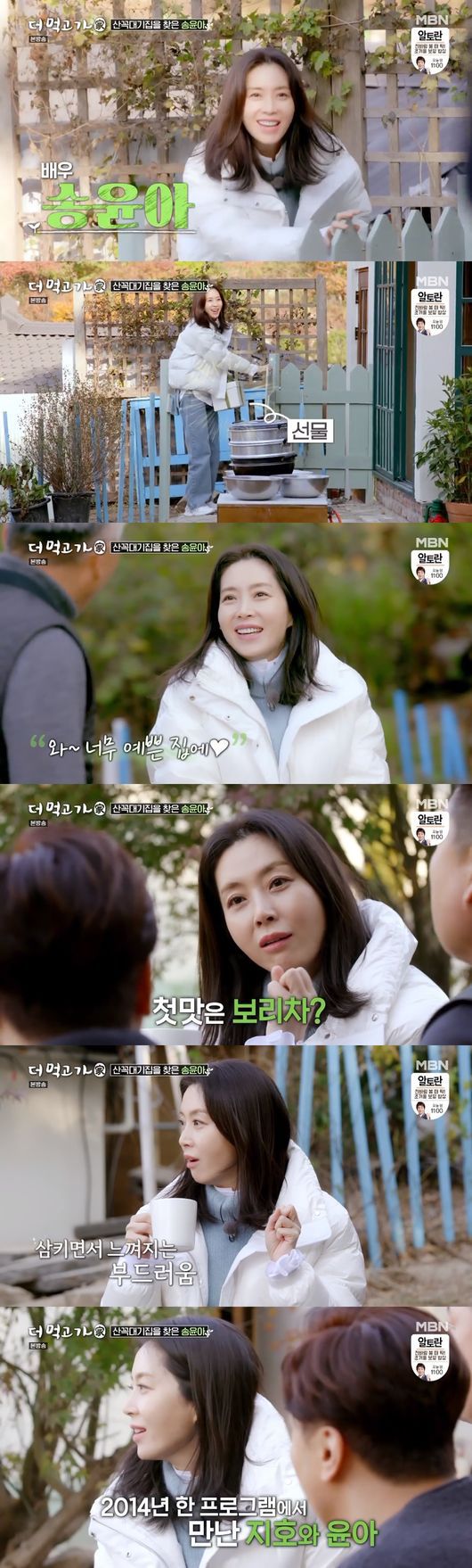 송윤아와 친분이 있는 임지호 셰프는 허리가 아픈 송윤아의 건강을 세심하게 챙겼다. 또한 앞서 박중훈과 담근 김장김치 맛을 보여줬다. 송윤아는 백김치, 고들빼기 김치 등을 폭풍 흡입한 뒤, “밤 호빵과 환상의 궁합”이라며 2차 먹방을 이어갔다. 음식을 먹으며, 고향인 경북 김천에서 ‘순심이’ 여주인공 김혜수를 동경하며 배우를 꿈꿨던 어린 시절 이야기와, 교육자였던 아버지와 함께 어려운 이웃에게 나눔을 실천했던 어머니, 막내 여동생을 누구보다 아꼈던 두 오빠와의 추억담을 꺼내면서 구수한 사투리를 발사했다.