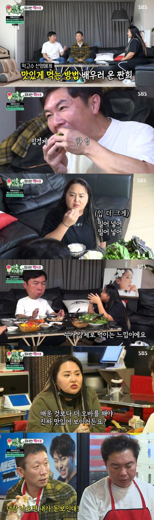 지난 22일 방송된 SBS 예능 '미운 우리 새끼'에서는 임원희가 홍선영의 집을 방문해 먹방 스킬을 전수받는 모습이 그려졌다.