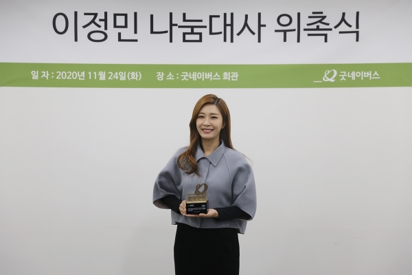 김중곤 굿네이버스 사무총장은 “선한 이웃들의 이야기를 전하며 대중에게 감동과 기쁨을 전하는 이정민 아나운서를 굿네이버스 나눔대사로 위촉하게 되어 매우 기쁘다”며, “앞으로 이정민 아나운서와 함께 소외된 국내외 아동에게 희망을 전하며 세상을 위한 좋은 변화를 만들어나가겠다”고 말했다.